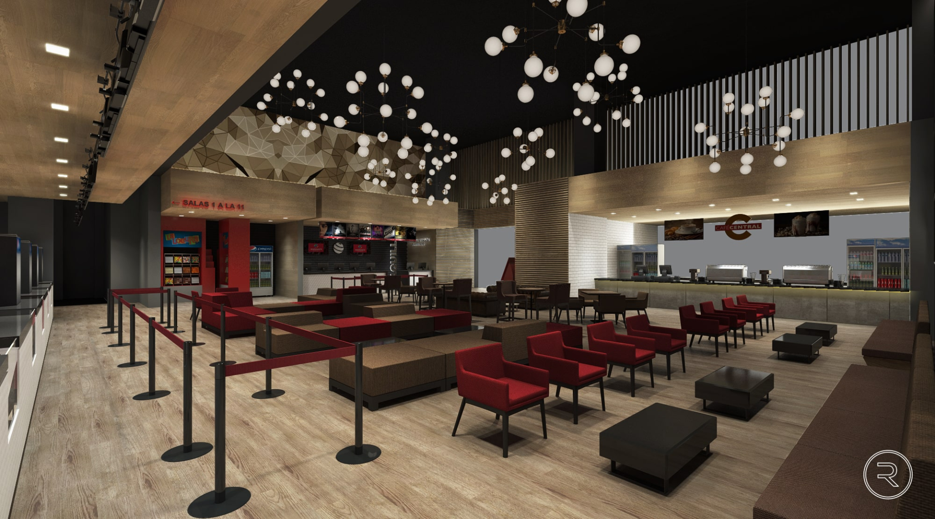 El mobiliario, las texturas y la iluminación se eligieron cuidadosamente para crear una atmósfera cálida y contemporánea, donde cada zona, desde el lobby hasta las áreas de descanso y convivencia, invita a disfrutar del cine en un entorno cómodo y sofisticado. El resultado es un conjunto de espacios que combinan funcionalidad y estilo, reforzando la identidad de la marca Cinemex y su compromiso con ofrecer experiencias únicas.