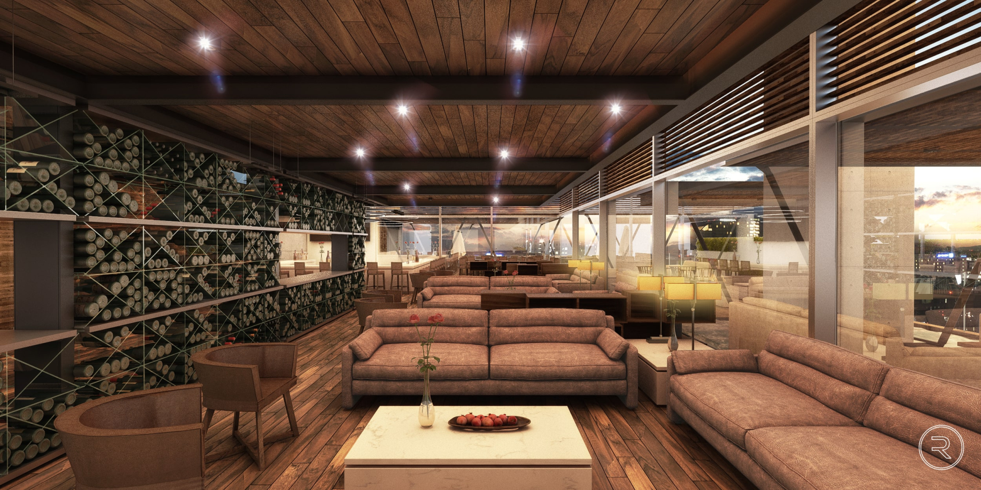 Propuesta que eleva la experiencia de Wine & Roses mediante espacios cálidos, elegantes y sofisticados. El diseño integra salones acogedores, terrazas con chimenea central y un lounge envolvente, combinando madera, luz tenue y vegetación para crear una atmósfera íntima y contemporánea. Cada área está pensada para fomentar la convivencia en un ambiente relajado y refinado.