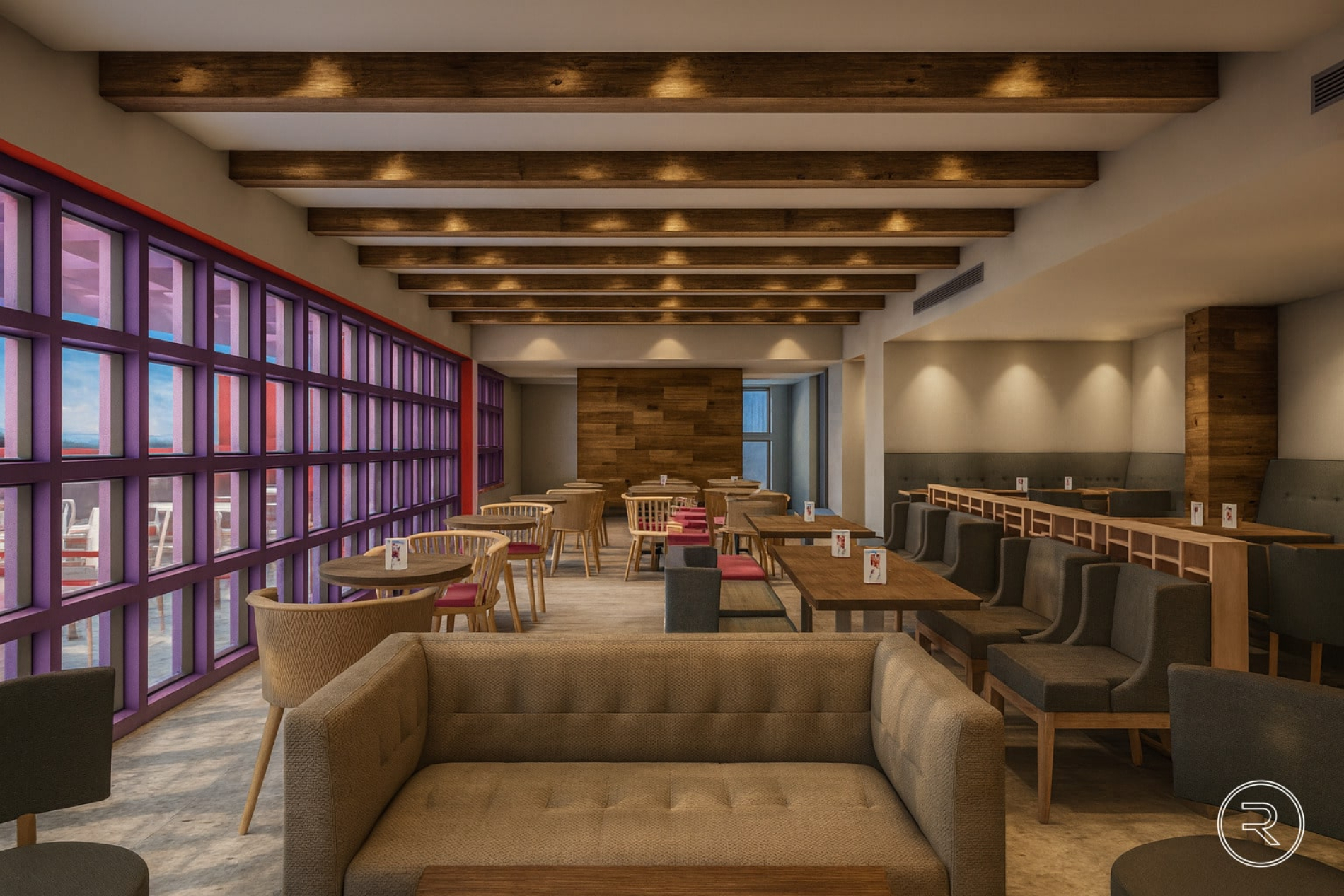 Nuestro equipo estuvo a cargo de la conceptualización del espacio, diseño interior y producción de renders, asegurando una propuesta visual coherente con la identidad del hotel. El proyecto buscó elevar la experiencia gastronómica a través de una ambientación cuidada, funcional y elegante.