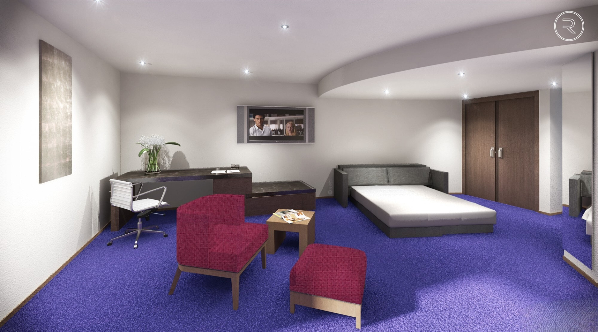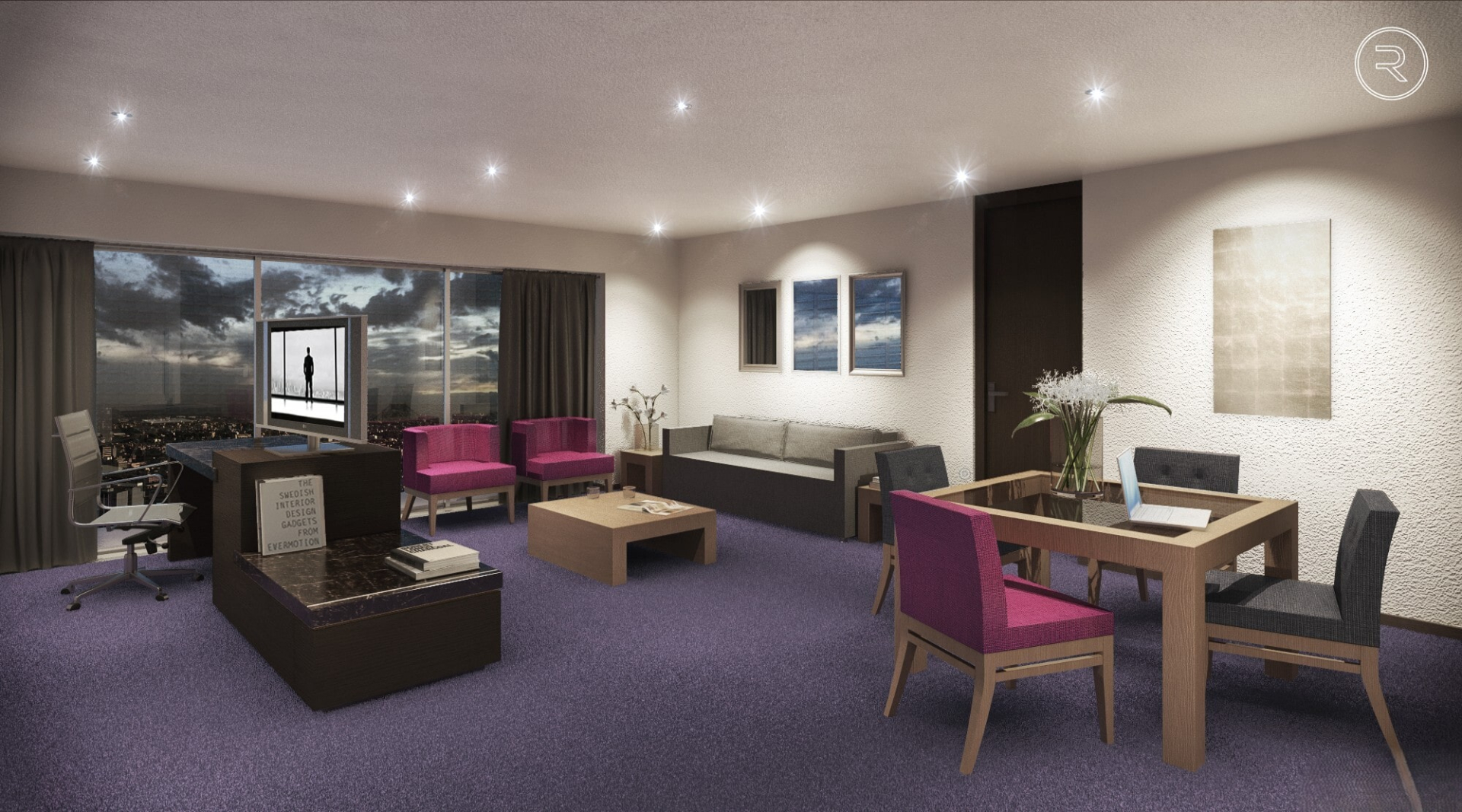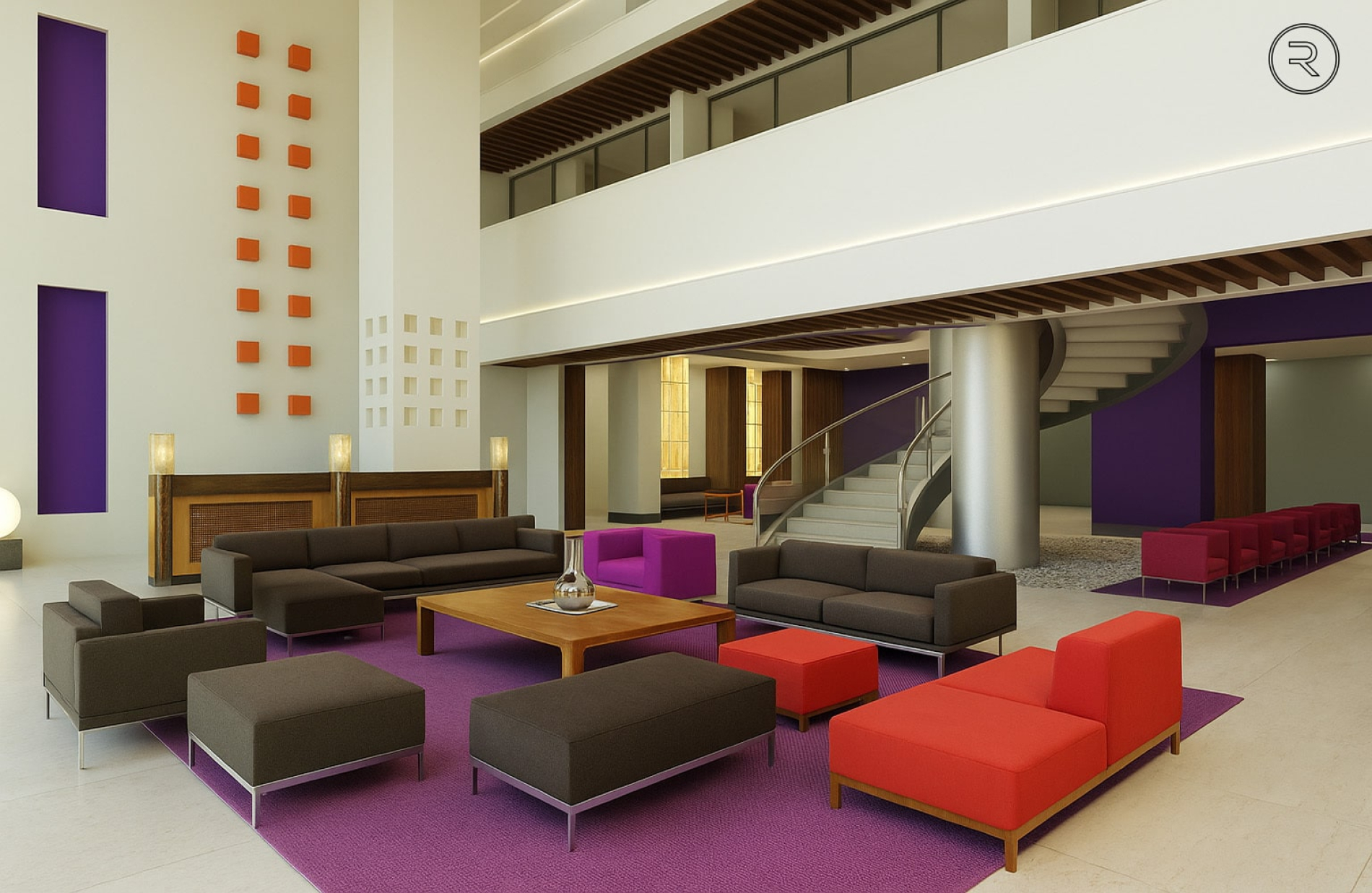 Nuestro equipo estuvo a cargo de la conceptualización del espacio, diseño interior y producción de renders, asegurando una propuesta visual coherente con la identidad del hotel. El propósito del proyecto fue generar una sensación de confort y funcionalidad, respetando los colores emblemáticos que caracterizan al arquitecto responsable de este espacio.