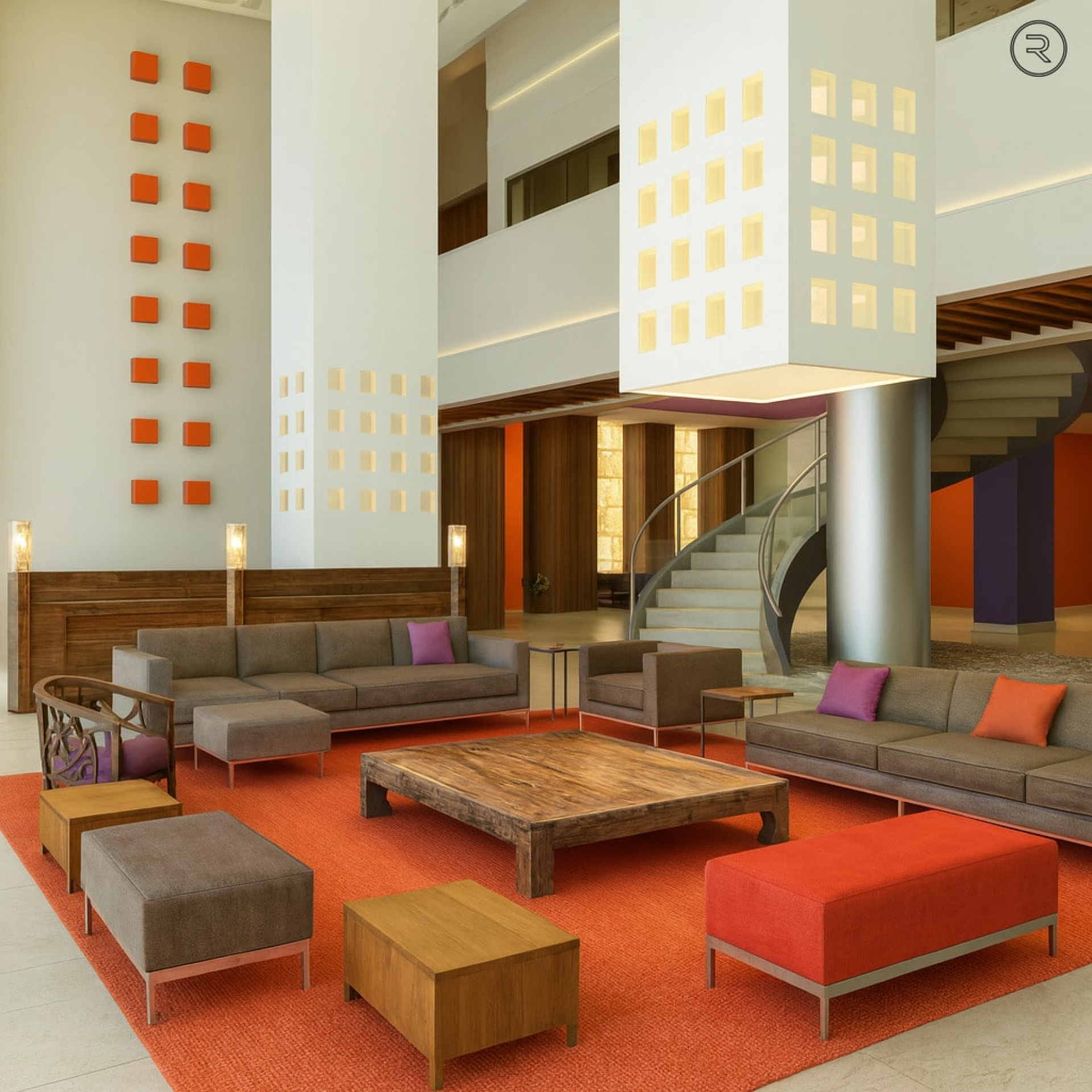 Desarrollamos la propuesta de interiorismo para las áreas públicas y habitaciones del Hotel Camino Real Pedregal.