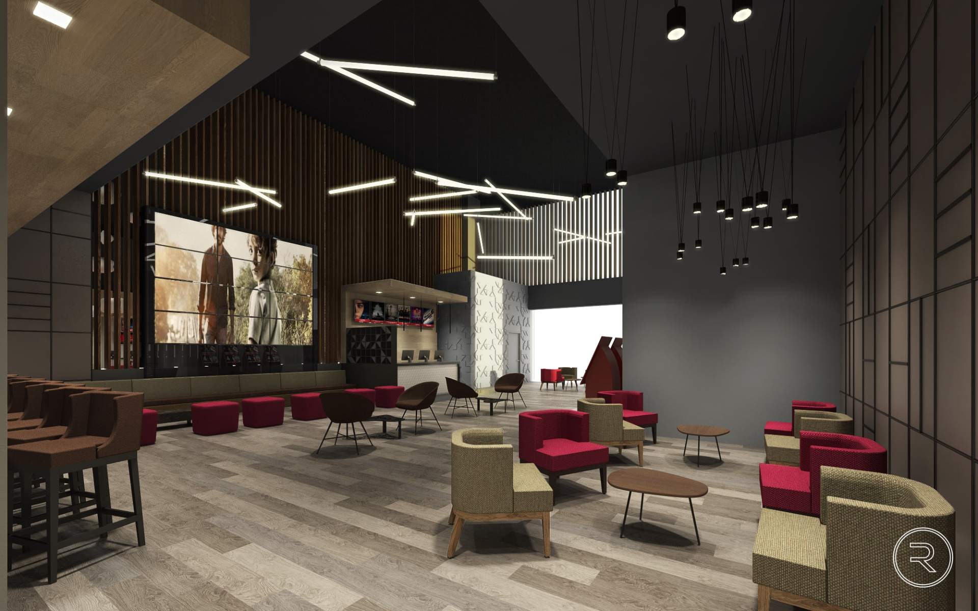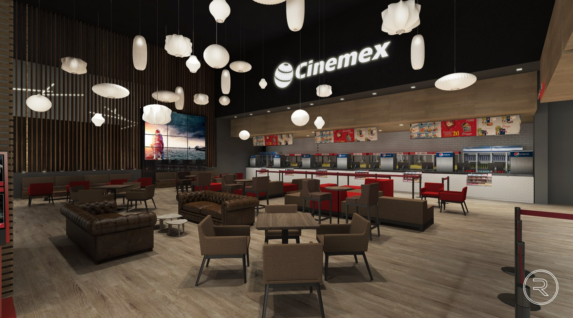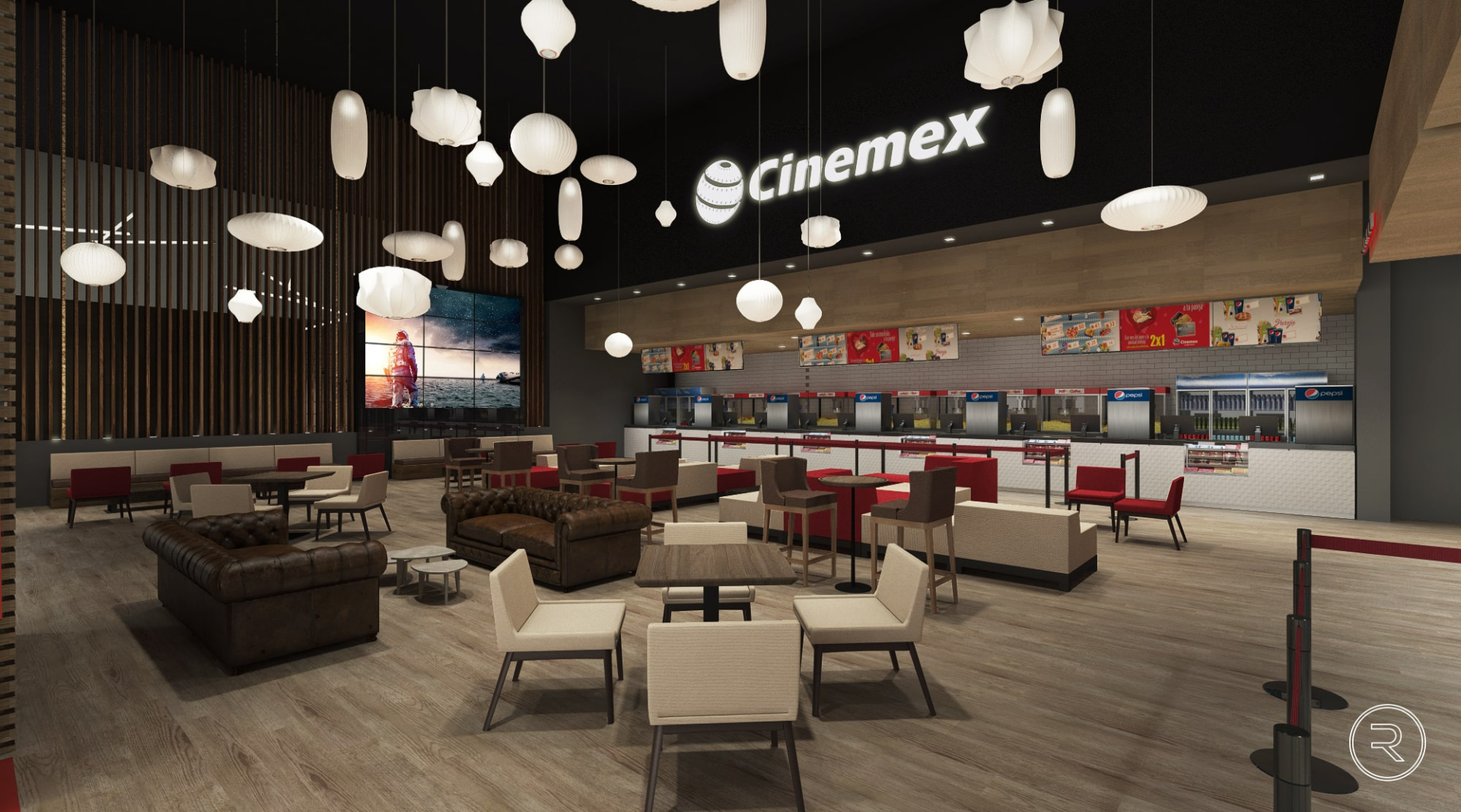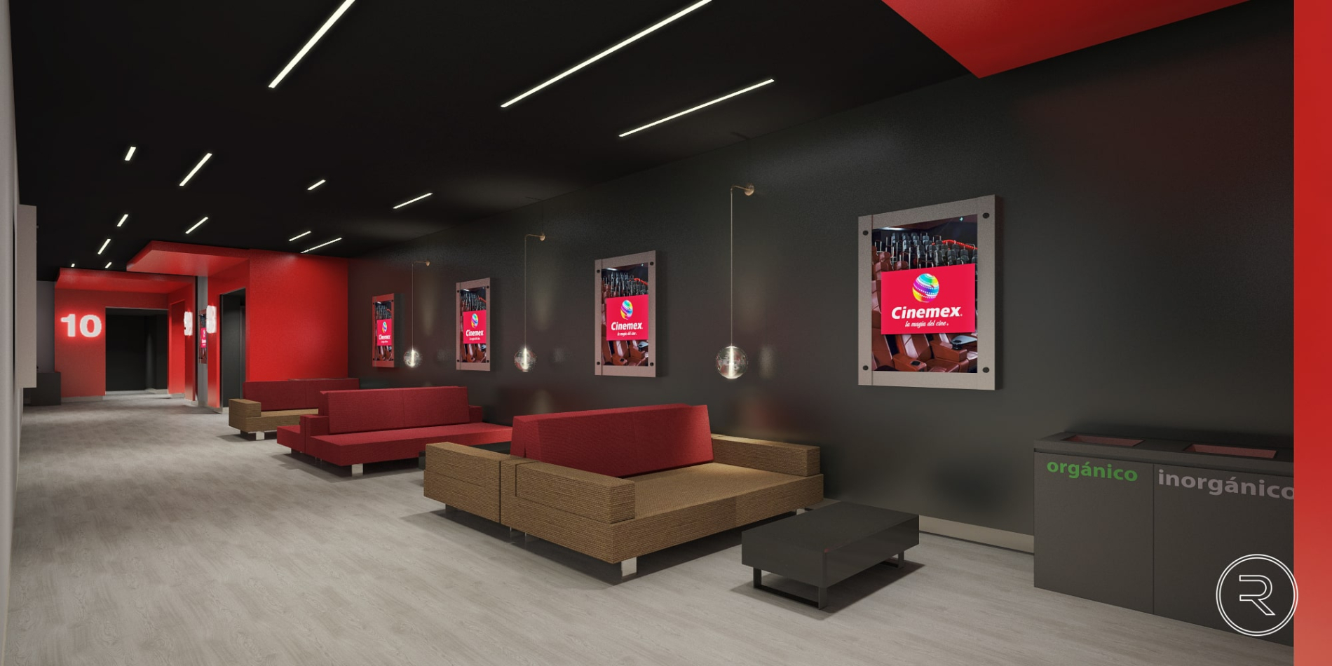 El mobiliario, las texturas y la iluminación se eligieron cuidadosamente para crear una atmósfera cálida y contemporánea, donde cada zona, desde el lobby hasta las áreas de descanso y convivencia, invita a disfrutar del cine en un entorno cómodo y sofisticado. El resultado es un conjunto de espacios que combinan funcionalidad y estilo, reforzando la identidad de la marca Cinemex y su compromiso con ofrecer experiencias únicas.
