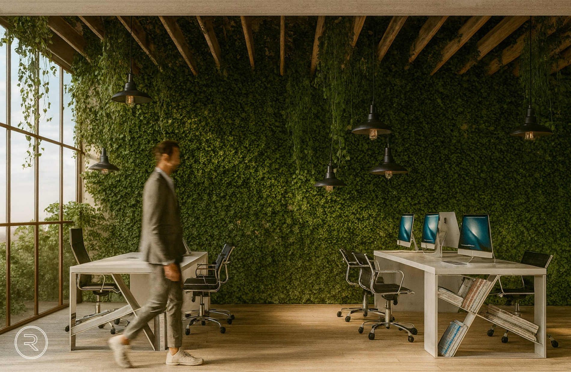 Para estas oficinas, desarrollamos una propuesta de interiorismo inspirada en la conexión con la naturaleza y el bienestar en el entorno laboral. El concepto busca integrar elementos orgánicos con una estética contemporánea, generando un espacio que promueve la creatividad, la concentración y la armonía.