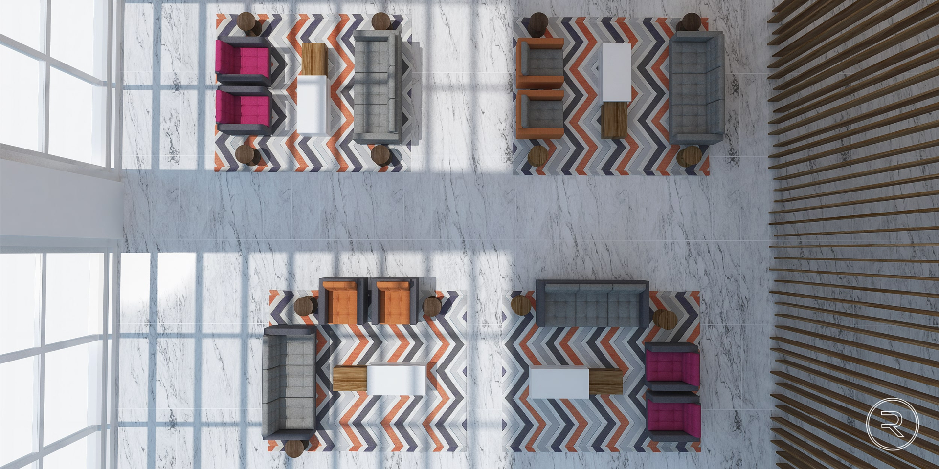 Para este proyecto se desarrollaron propuestas de interiorismo para el vestíbulo, enfocadas en crear un espacio con carácter contemporáneo, elegancia y equilibrio visual. Las diferentes opciones exploran combinaciones de materiales, texturas y mobiliario que resaltan la altura y luminosidad del lugar, otorgándole una presencia sofisticada y acogedora.