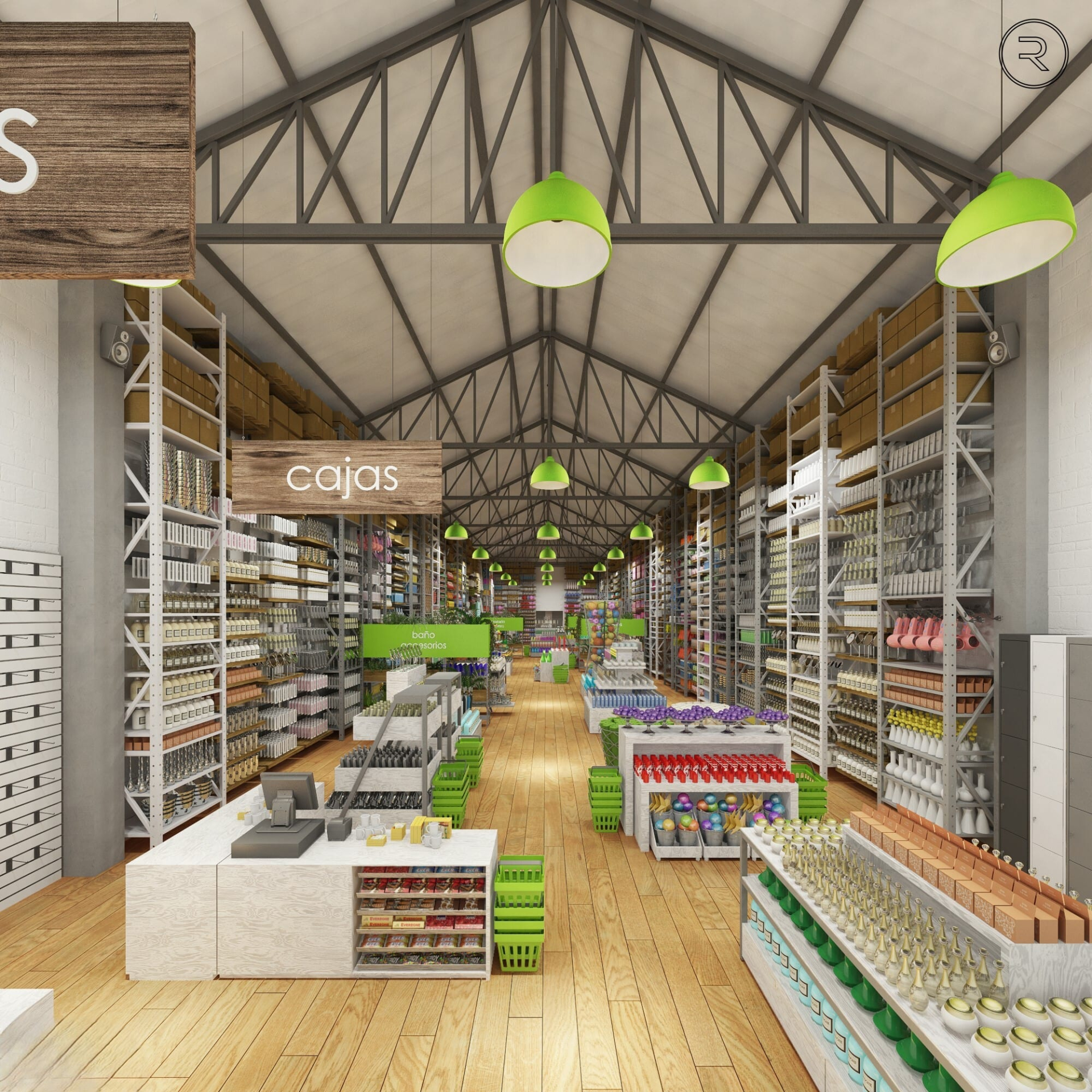 Propuesta de interiorismo comercial enfocada en crear una experiencia de compra funcional y atractiva. El diseño resalta la variedad de productos mediante una organización clara, materiales cálidos e iluminación estratégica. Cada elemento refuerza la identidad de marca y genera un ambiente moderno, accesible y acogedor.