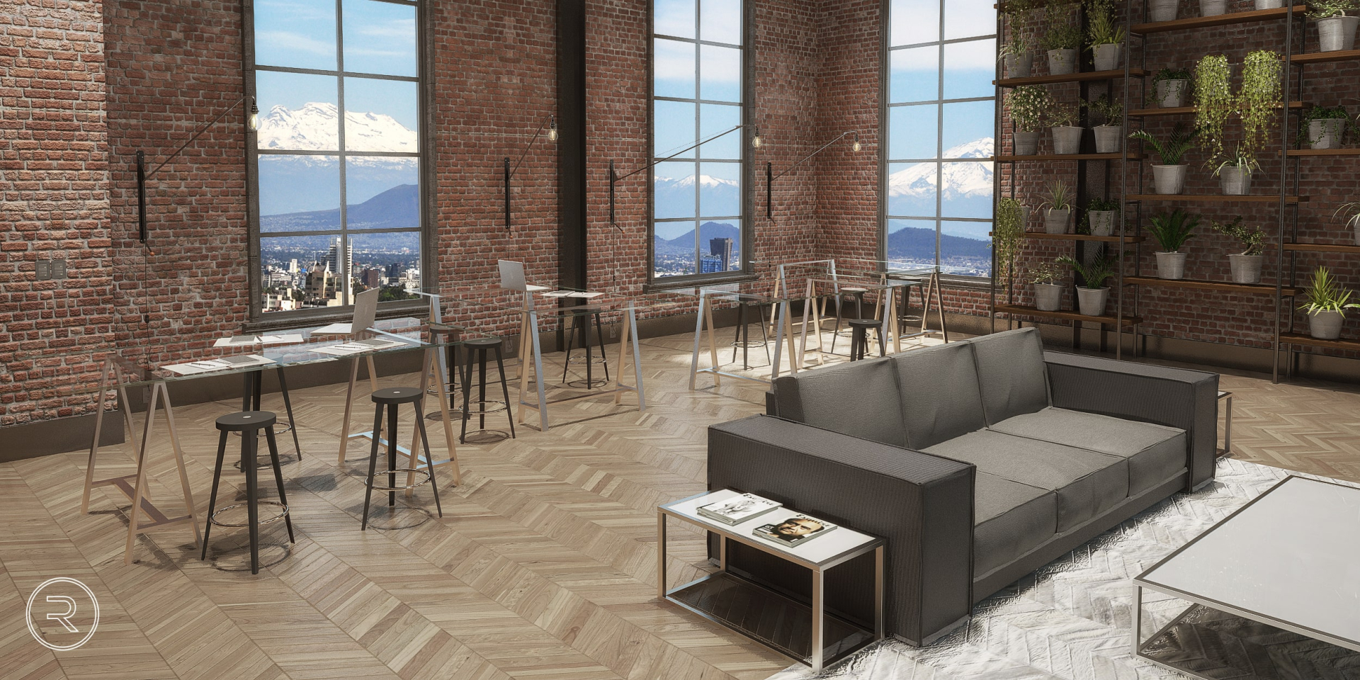 Proyecto de interiorismo enfocado en crear un espacio de trabajo contemporáneo dentro de una estructura industrial. Se buscó equilibrar materiales cálidos y texturas naturales para lograr un ambiente funcional, luminoso y con carácter.
