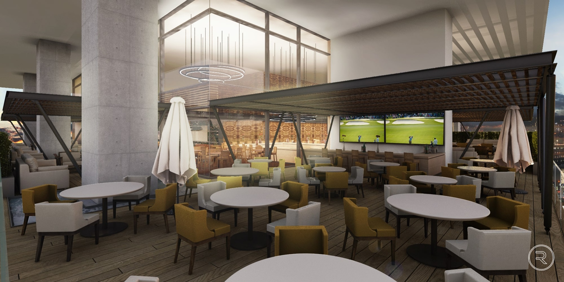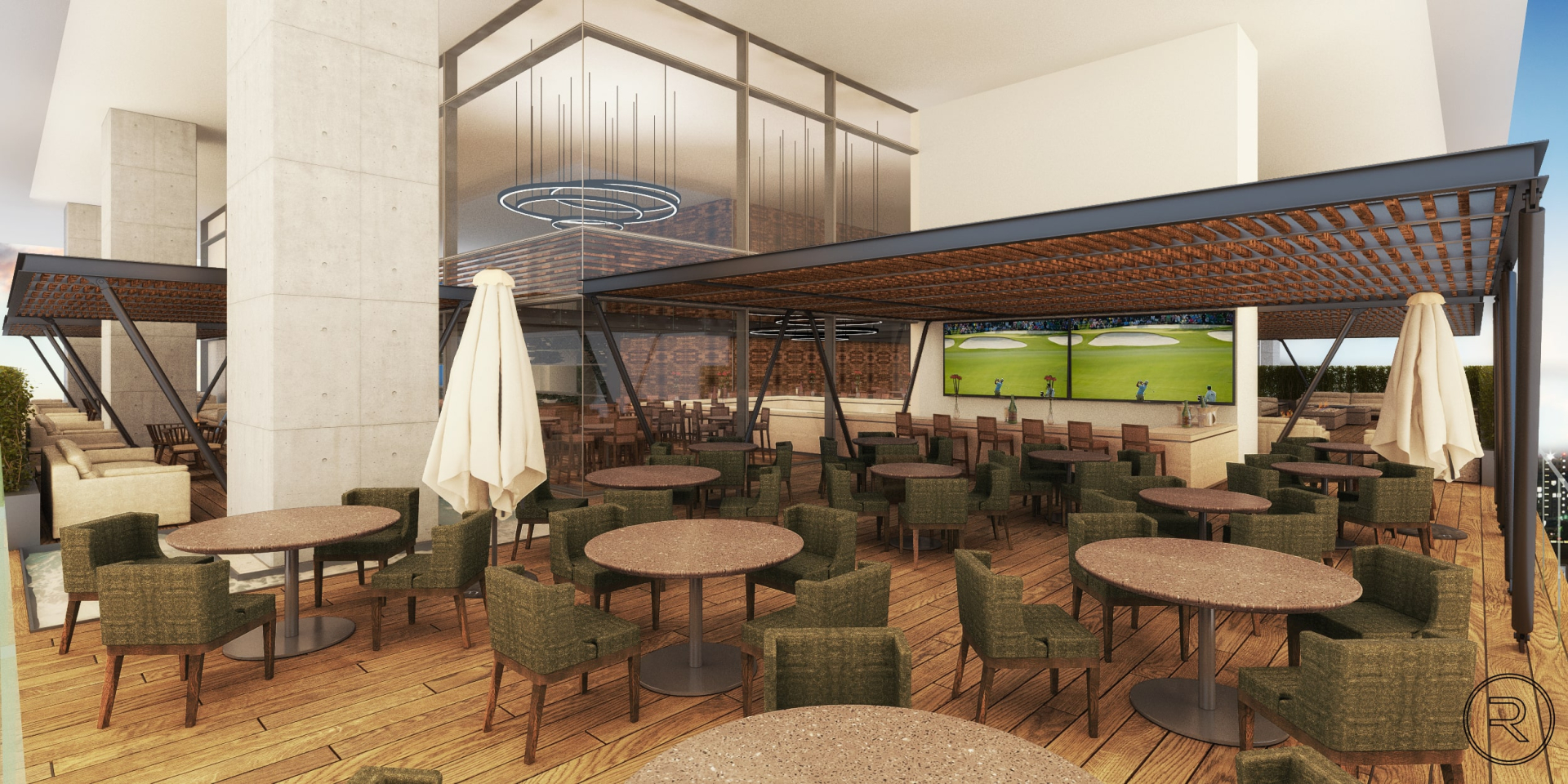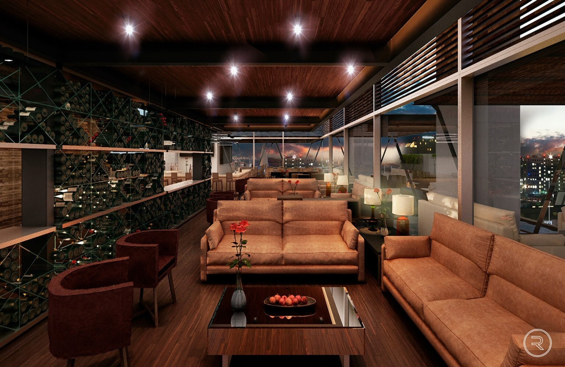 Propuesta que eleva la experiencia de Wine & Roses mediante espacios cálidos, elegantes y sofisticados. El diseño integra salones acogedores, terrazas con chimenea central y un lounge envolvente, combinando madera, luz tenue y vegetación para crear una atmósfera íntima y contemporánea. Cada área está pensada para fomentar la convivencia en un ambiente relajado y refinado.